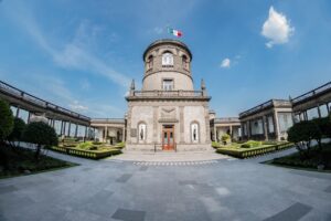 El Castillo de Chapultepec, situado en el corazón del Bosque de Chapultepec, ofrece unas vistas panorámicas espectaculares de la ciudad. Durante el atardecer en la CDMX, la luz se refleja sobre los jardines y el horizonte de rascacielos de Reforma, creando un paisaje digno de postal.