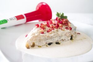 Los chiles en nogada son un plato icónico que representa los colores de la bandera mexicana. Este de los platillos típicos de la CDMX combina chile poblano relleno de picadillo de carne, frutas y nueces, bañado con una salsa de nuez y coronado con granada. Es un plato especialmente popular durante septiembre y las celebraciones del Día de la Independencia. Restaurantes como el Café de Tacuba ofrecen una de las mejores versiones tradicionales.